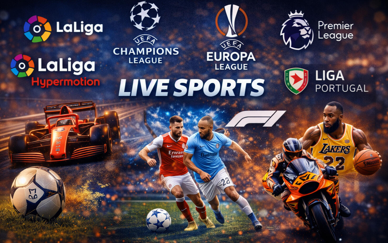 Cubrimos todos los eventos deportivos, porque sabemos que los quieres ver todos: LaLiga EA Sports, LaLiga Hypermotion, Champions League, Europa League, Premier League, Liga Portugal, MotoGP, F1, NBA...
